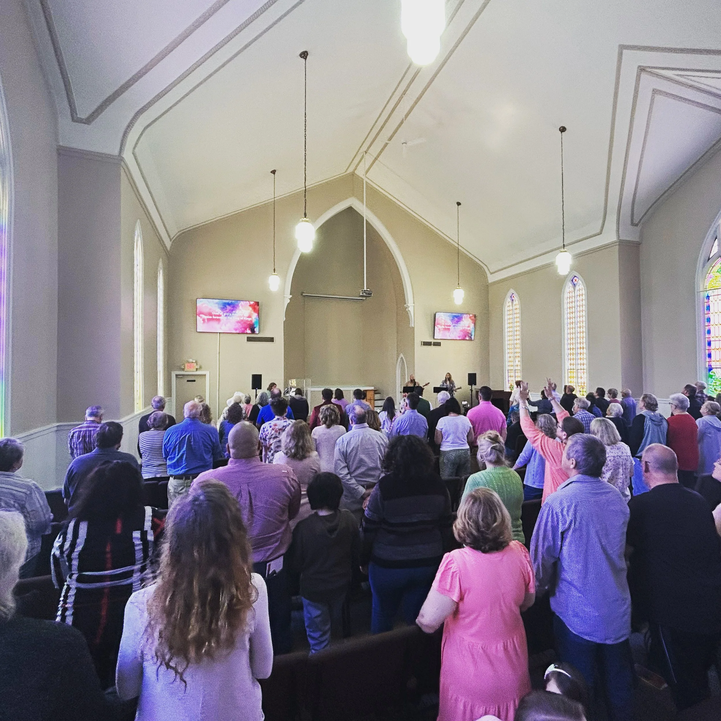 We will spend time praising God through song. Our worship team will lead us, and the words to the songs are put on screens so you can sing along. We invite you to participate how you feel comfortable.